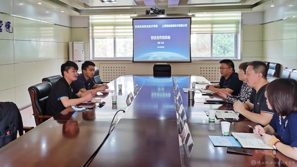 2020年9月15日,上海阑途信息技术有限公司校企合作部高级经理周毅、宝鸡城市经理田雷来我校进行校企合作洽谈交流。学校党委委员、副院长徐圣月、汽车工程学院副院长李靖、校企合作处副处长田正本等接待了周毅一行,并举行了校企洽谈会。
