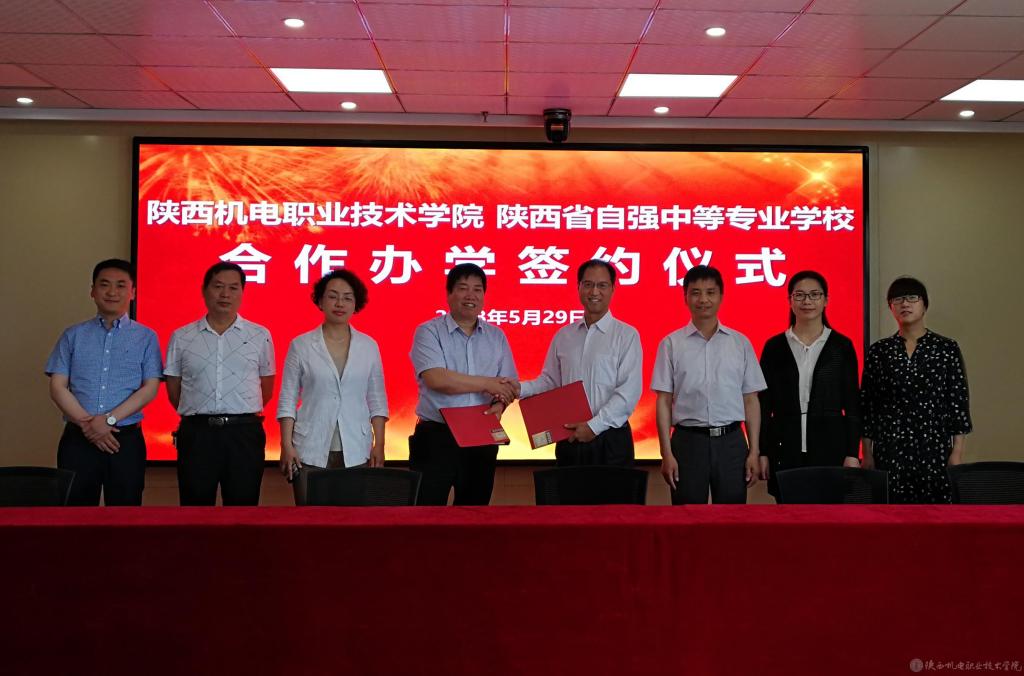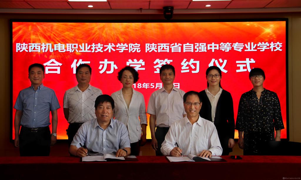 2018年5月29日,学院与陕西省自强中等专业学校举行中高职集团化办学签约仪式。学院党委书记、院长伊逊智,副院长张新堂、副院长张琴等出席签约仪式。陕西省自强中等专业学校校长段瑞亭、副校长祁淑红等一行参观学院并出席签约仪式。