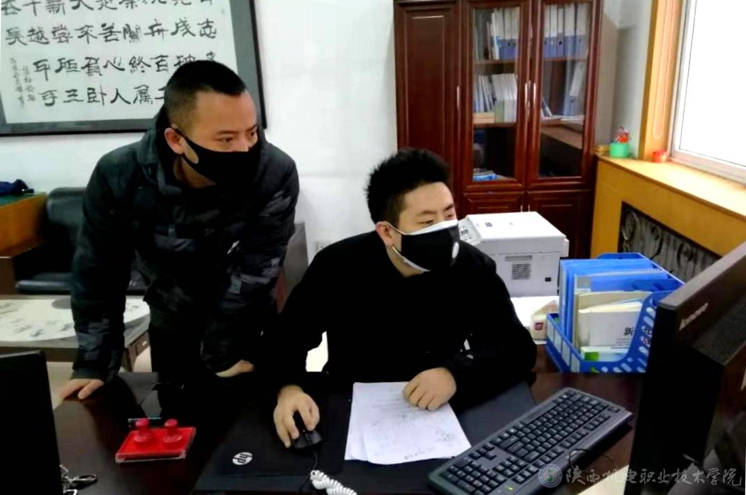 党委学工部部长王建斌(左)、副部长常小凯(右)审核上报数据