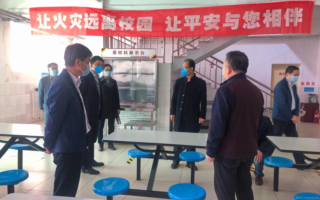 一行人员深入校医务室、学生餐厅、教学楼、公寓楼、隔离区、视频监控室、防疫物资储备室等场所,详细检查开学前疫情防控布控及复学前的各项准备工作,并现场提出整改意见及解决方案。