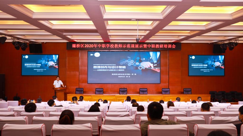 2020年6月16日,西安市灞桥区“2020年中职学校教师示范课展示暨中职教师培训研讨会”在西安铁路职业学校隆重召开。BEAT365官网作为高职院校中的优秀代表,受灞桥区教育局邀请,学院委派,我院基础部英语教研室主任、名师工作室主持人李明副教授参加了此次研讨会,为大会作题为《微课创作与设计策略》的专题报告。会议由西安市灞桥区教育局主办、灞桥区教师进修学校承办、西安铁路职业学校协办,来自全区近70名教师参加了会议。
