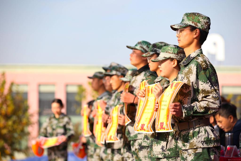 2020级新生军训总结表彰大会暨开学典礼于10月23日下午在蟠龙校区运动场隆重举行,党委副书记、院长向纪明,副院长张新堂、徐圣月、张琴,院长助理赵争东,96874部队营长屈克瑞,各部门负责人以及2020级新生1700余人出席,大会由党委副书记邓新治主持。