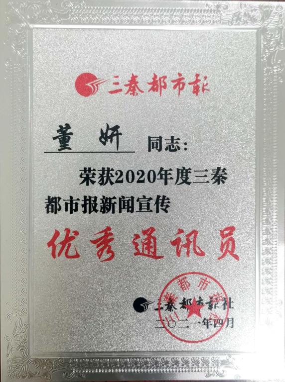 4月7日,三秦都市报宝鸡通讯员党史教育暨业务培训通联表彰大会在宝鸡西建非公有制企业党建学院召开。我校党委宣传部董妍同志荣获2020年度三秦都市报“优秀通讯员”,受到了表彰奖励。
