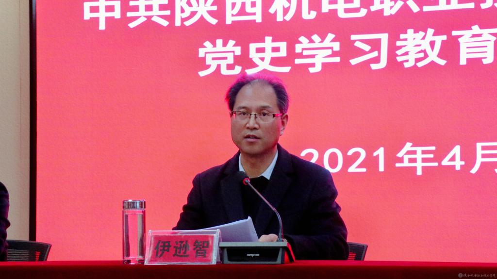 伊逊智做动员讲话。他指出学校党委根据上级部署,制定了实施方案,总的要求是学党史、悟思想、办实事、开新局,要坚持学习党史与学习新中国史、改革开放史、社会主义发展史相贯通,进一步增强“四个意识”、坚定“四个自信”、做到“两个维护”。准确把握党史学习教育的目标要求。结合教育特点和学校实际,一是做到学史明理,坚信创新理论,感悟真理力量。二是做到学史增信,坚定理想信念,锤炼政治品格。三是做到学史崇德,坚守立德树人,赓续精神血脉。四是做到学史力行,坚持行胜于言,开拓发展新局。其次,要准确把握党史学习教育的重点内容,落实“六个进一步”要求。