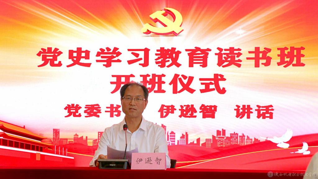 5月8日下午,陕西机电学院举行党史学习教育读书班开班仪式。党委书记伊逊智出席开班仪式并讲话,党委副书记、纪委书记齐晓军,副院长张新堂、副院长张琴、院长助理赵争东及全体中层干部参加了开班仪式。开班仪式由党委副书记邓新治主持。