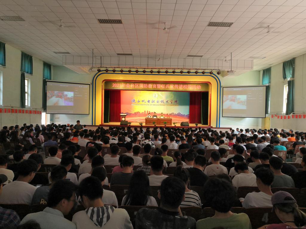 为宣传国家征兵政策,鼓励热血青年学子应征入伍,报效祖国,6月11日上午,我校人武部联合金台区武装部在宝福路校区组织了“2021年国防教育暨征兵宣传进校园宣讲会”活动。活动通过征兵工作座谈会、校园宣讲会、现场咨询会等形式进行了全方位的宣传。学校副院长张新堂、金台区副区长张小平、金台区武装部部长轩继东、学校人武部部长王建斌、保卫处副处长常小凯、各二级学院书记及全校一千多名学生参加了本次活动。