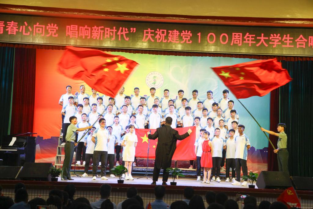赛后,学校青柠合唱团献唱《在灿烂的阳光下》,青年教师合唱团献唱《江山》《祖国不会忘记》,与会领导和师生合唱《没有共产党就没有新中国》,激励和号召广大师生颂扬党的光辉历史、缅怀党的丰功伟绩,铭记红色历史、传承红色基因、赓续红色血脉,永远听党话、感党恩、跟党走,唱响中国特色社会主义新时代的主旋律,奏响全校师生砥砺奋进的最强音。