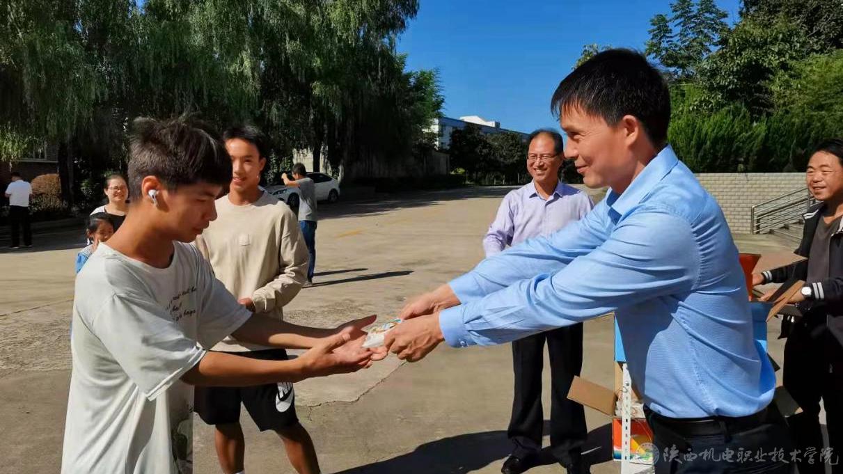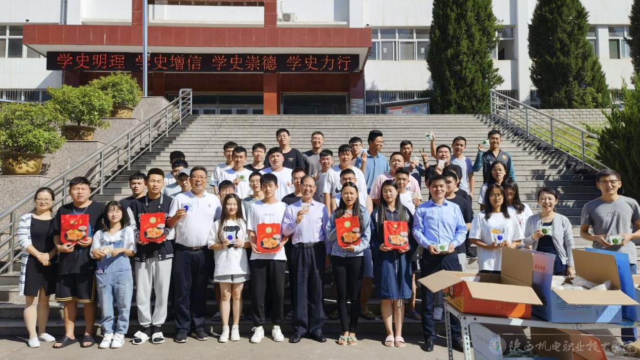 又是一年中秋月,送汝月饼满院香。9月21日上午,党委书记伊逊智、党委副书记邓新治、院长助理赵争东、学生处负责人、各二级学院支部书记及学生科科长等为留校的学生发放月饼,团委老师前往十四运我校志愿者驻地慰问学生,带去学校对莘莘学子的节日问候和祝福。