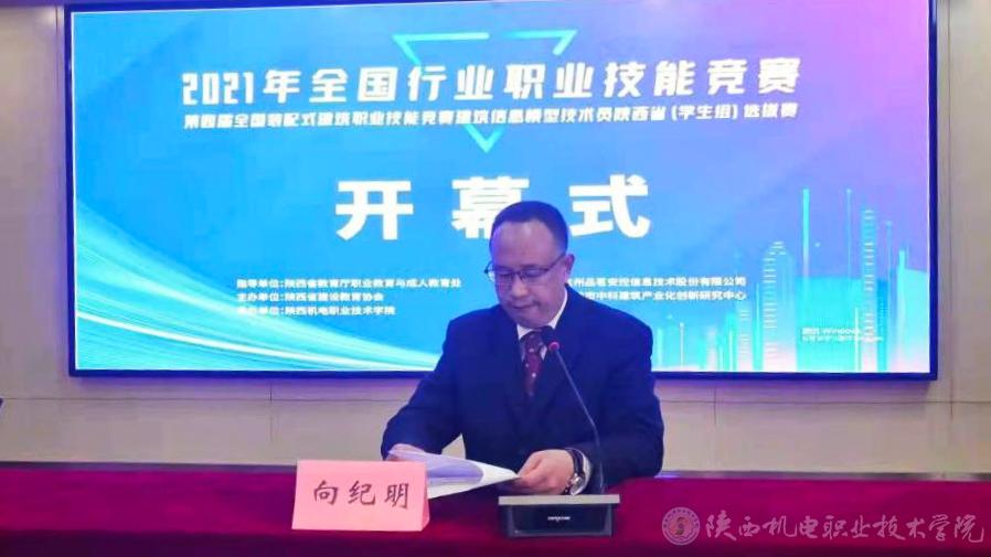 向院长在欢迎词中,首先向关心支持本次大赛的各级领导、嘉宾表示衷心的感谢;其次,向院长介绍了学校的基本情况,重点介绍了学校的发展规划以及建筑业发展的趋势,向院长强调作为土木建筑特色鲜明的国家优质专科高职院校、作为“1+X”BIM证书制度全国首批试点校,学院非常重视BIM技术的教学及应用。2021年全国行业职业技能竞赛-第四届全国装配式建筑职业技能竞赛建筑信息模型技术员陕西省(学生组)选拔赛的举办,顺应了新时代建筑产业的发展趋势,深入贯彻落实《国家职业教育改革实施方案》,为学院提供了一次在产业人才培养和产学研深度融合方面难得的学习机会,这将推动BIM 技术在陕西高校土建类相关专业教学中的应用实践;最后,向院长预祝2021年全国行业职业技能竞赛-第四届全国装配式建筑职业技能竞赛建筑信息模型技术员陕西省(学生组)选拔赛大赛取得圆满成功!