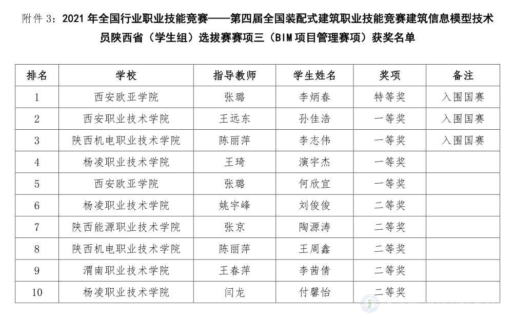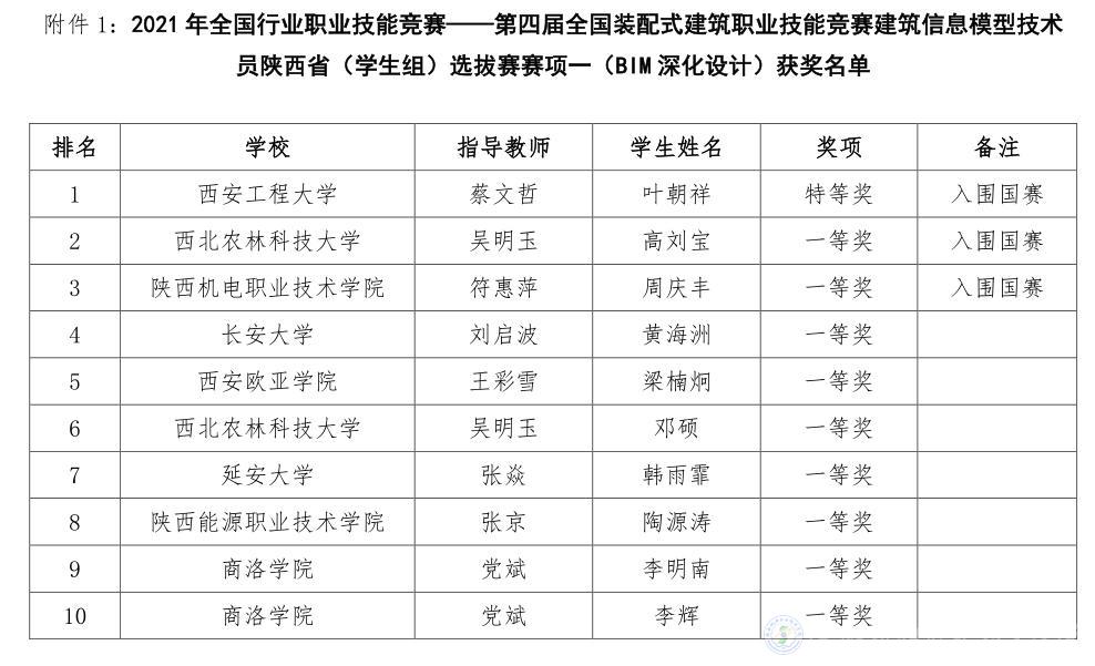 由陕西省建设教育协会主办、BEAT365官网承办,杭州品茗安控信息技术股份有限公司、廊坊市中科建筑产业化创新研究中心协办的2021年全国行业职业技能竞赛一第四届全国装配式建筑职业技能竞赛(学生组)陕西省选拔赛于2021年10月22日在线上隆重举行。大赛共分为BIM深化设计,BIM投标应用,BIM项目管理三个模块。我院派出符惠萍、张悦、陈丽萍三个老师分别辅导三名学生参加三个模块的比赛,与来自全省28所本、专科院校,265名选手进行了激烈角逐。
