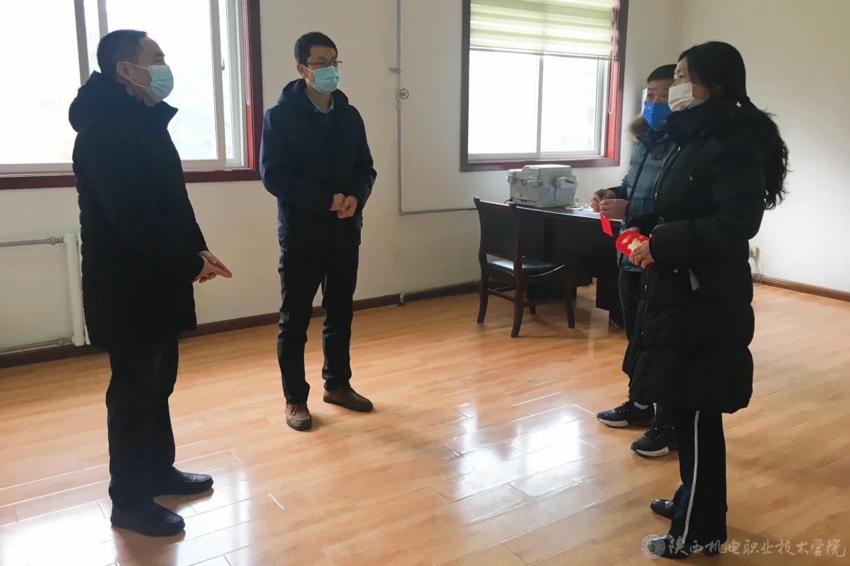 每逢春节走访慰问坚守岗位教职员工已成为学校的一项传统。邓新治一行先后来到宝福路校区热力中心、校南门门卫室、办公室、后勤基建处等岗位,亲切看望和慰问了春节期间依然坚守在工作一线的多名工作人员。并与值班员工亲切交谈,详细了解学校在节假日期间的服务、供热、安保等情况,代表学校向他们致以新春的问候并为学院发展作出的贡献表示感谢,并勉励大家在新的一年里能够以更加饱满的热情、更充沛的精力,投入到学院的各项安全管理、后勤保障和疫情防控工作中去,凝心聚力,履职尽责,确保全校教职工度过一个快乐、祥和的春节。