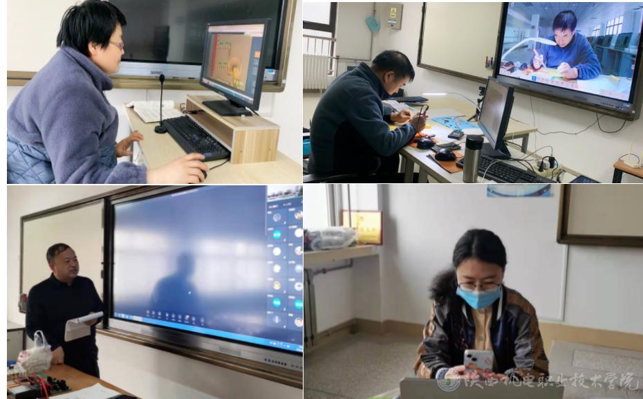 我校教师坚持“以学生为中心”的教学理念,发扬“机电精神”,以高度的责任心和使命感,履行线上教学的教书育人职责。科学调整授课计划、创新教学方式方法、将疫情防控融入课堂、排解学生对网络学习的焦虑、及时跟踪学习进度、网络平台辅导答疑。任课教师依托智慧职教、超星学习通、中国大学MOOC等网络教学平台资源,精准把握学情,通过腾讯会议、钉钉、腾讯课堂等上好线上教学每一课。并加入班级QQ群或微信群,做好课后辅导答疑,确保线上线下教学同质等效。