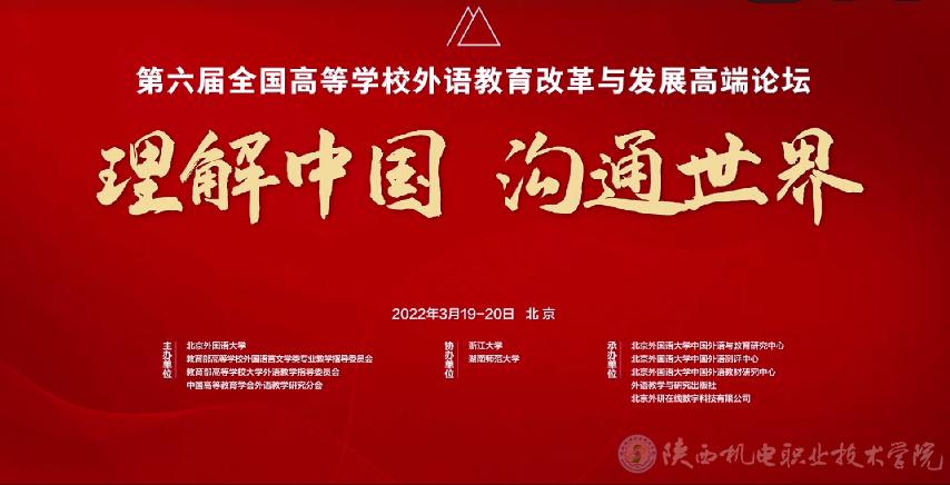 由于本地疫情缘故,会议全程线上直播,我校基础部组织英语教研室教师集体在线观看学习,与全国数十万外语教育同仁云端相聚,共探百年变局下中国高等外语教育发展新思路,共创人类命运共同体格局下中国高等外语教育新境界。