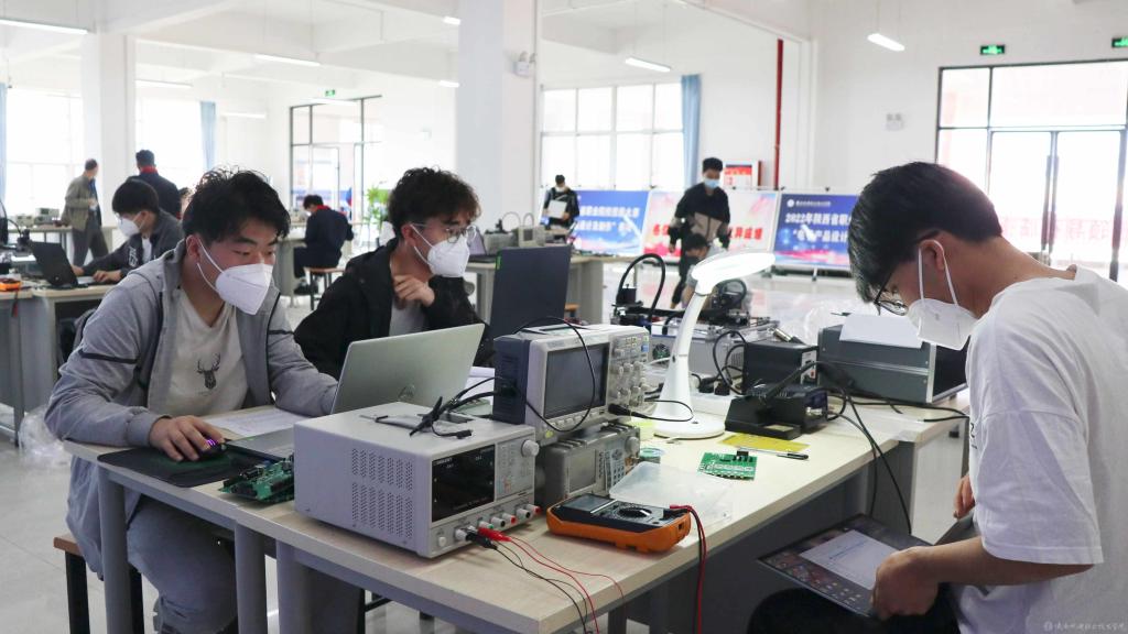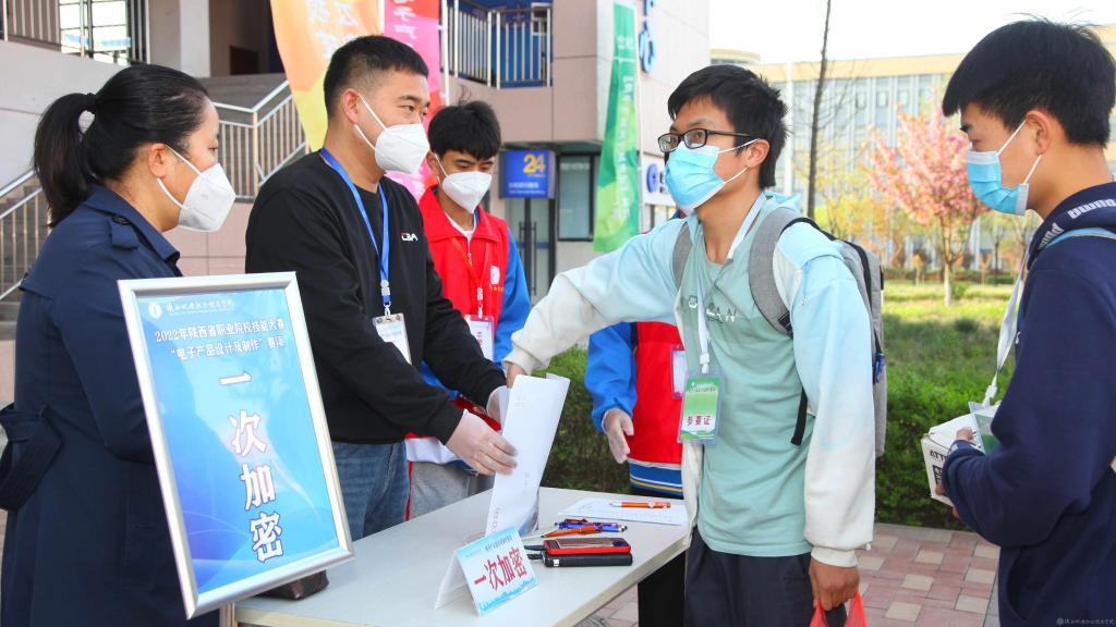 4月9日上午,2022年陕西省职业院校技能大赛“电子产品设计及制作”赛项在BEAT365官网蟠龙校区顺利进行。本项比赛共有来自9个院校的18支代表队参赛,按照疫情防控要求,全程闭环管理,按照要求分两个考场同时进行。