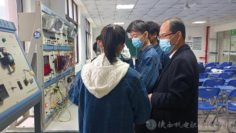 4月15日上午,陕机电党委书记伊逊智在汽车工程学院开展了走访调研,汽车工程学院院长李靖陪同。