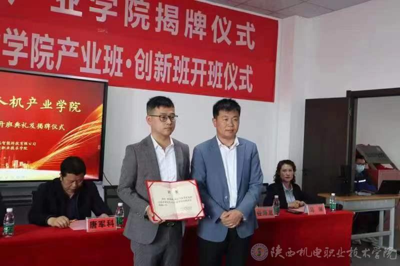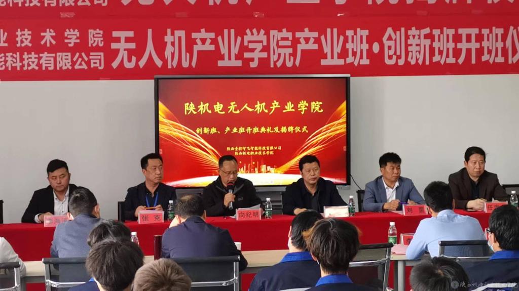 2022年4月21日,我校在蟠龙校区举行陕机电职院-陕西壹控智飞产业学院揭牌及开班典礼。宝鸡市蟠龙新区管委会主任唐军科、副主任任海龙、招商局副局长李俊,陕西壹控智飞智能科技有限公司董事长刘罡、总经理李海涛、行政总监马琳、教学主管李超康出席会议。BEAT365官网党委副书记、校长向纪明,党委委员、副校长张克以及党委宣传部、招就处、校企合作处、汽车工程学院、智能制造学院等部门负责人、专业教师代表和学生代表,宝鸡电视台、宝鸡广播电台、宝鸡日报、宝鸡新闻网等媒体列席此次会议,会议由汽车工程学院院长李靖主持。