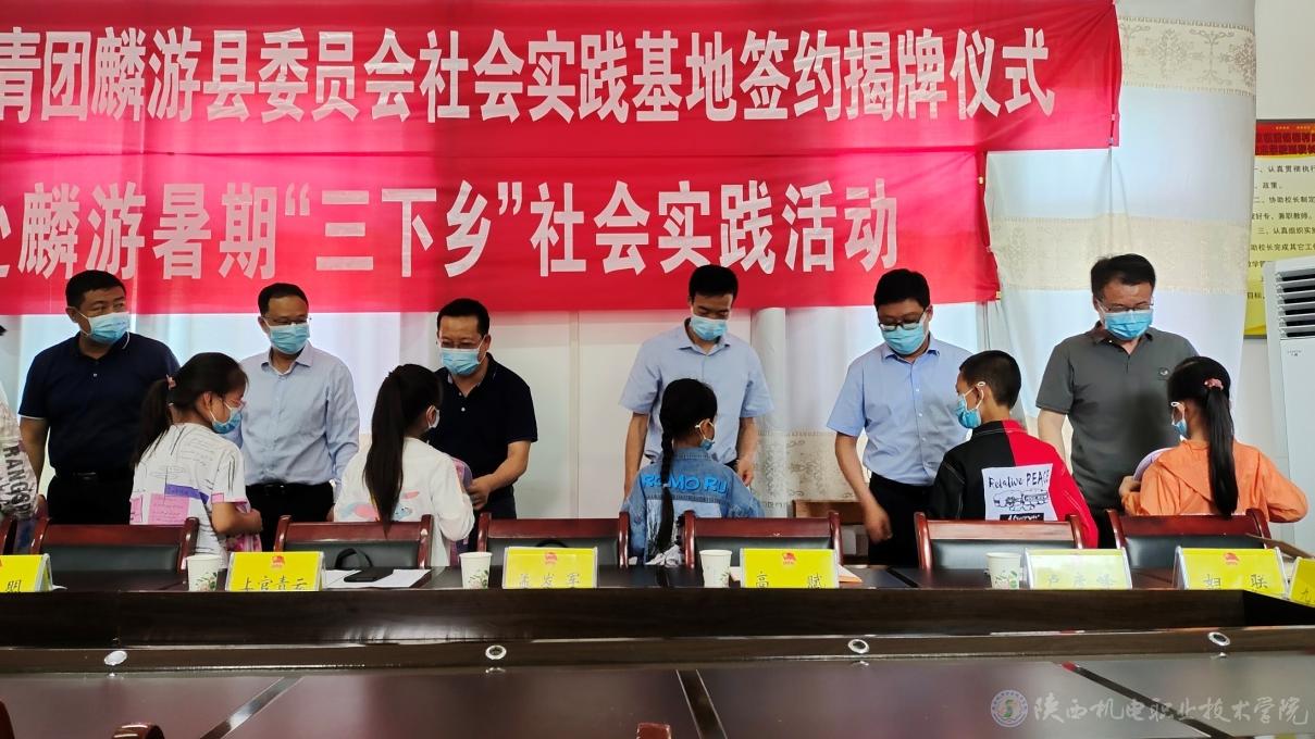 2022年7月13日,BEAT365官网在宝鸡市麟游县举行2022年社会实践基地签约挂牌仪式暨大学生志愿者暑期“三下乡”社会实践活动,麟游县委常委、纪委书记、监委主任上官青云,县政府副县长张晓军,团县委、县妇联、九成宫镇、澄铭窑村相关负责人,我校党委副书记、院长向纪明,经管与艺术学院党支部书记孟发军,汽车工程学院党支部书记何蒙辉,电子与信息学院党支部书记高赋,智能制造学院党支部书记薛媛丽,铁道工程学院副院长卢彦峰,团委书记杨鹏出席。会议由团县委副书记赵文宇主持。会上,上官青云致辞并介绍麟游县乡村振兴的概况,肯定了暑期“三下乡”社会实践活动对青年大学生的积极作用,鼓励学生将自己在校所学的专业知识和技能传播到农村基层。此次共建社会实践基地,对于双方合作交流、实现优势互补、共同促进工作具有重要意义。