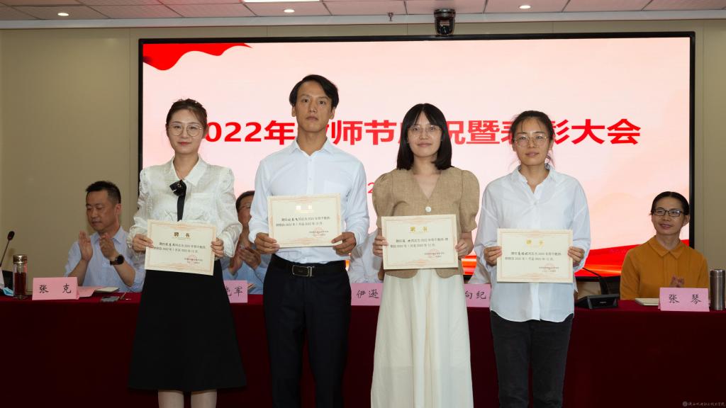 张克同志宣读2022年“师德先进个人”表彰文件并为获奖教师代表颁奖。