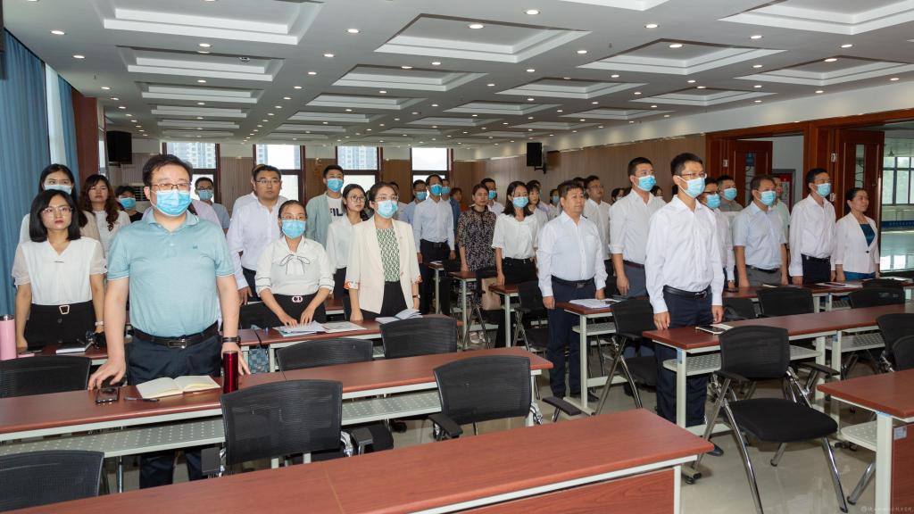 大会在雄壮的国歌声中拉开帷幕,人事处处长、教师发展中心主任罗亚军带领2022年新入职教师进行入职宣誓仪式,校领导为名师工作室授予鲜花。
