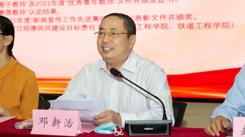 邓新治同志宣读2022年增聘“骨干教师”及2021年度“优秀青年教师”文件并为获聘教师颁发聘书。