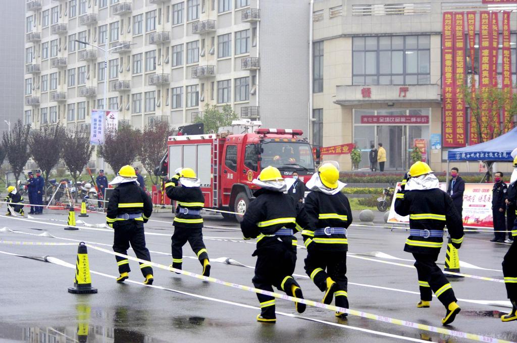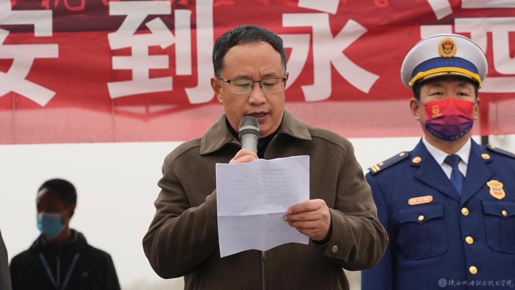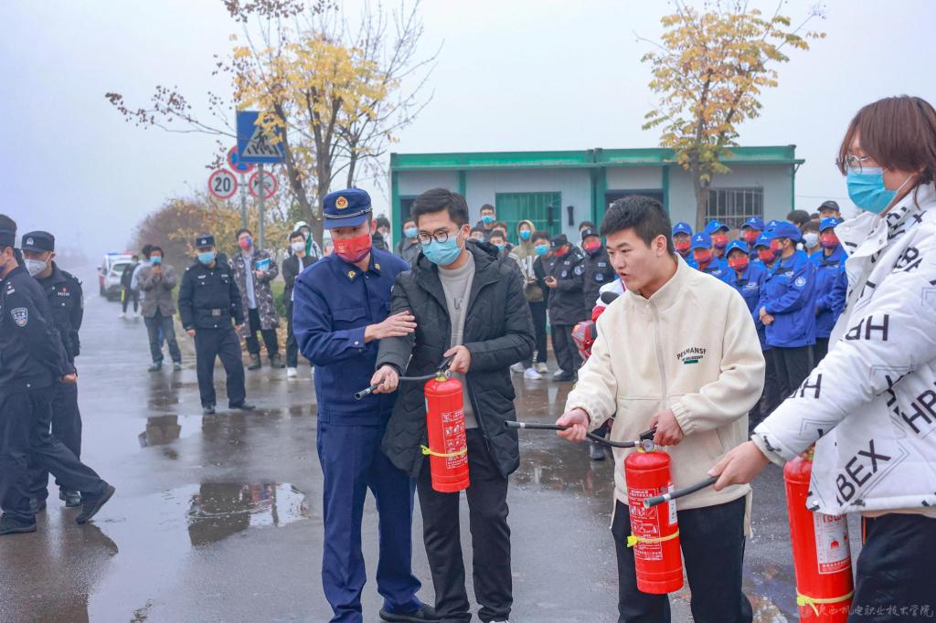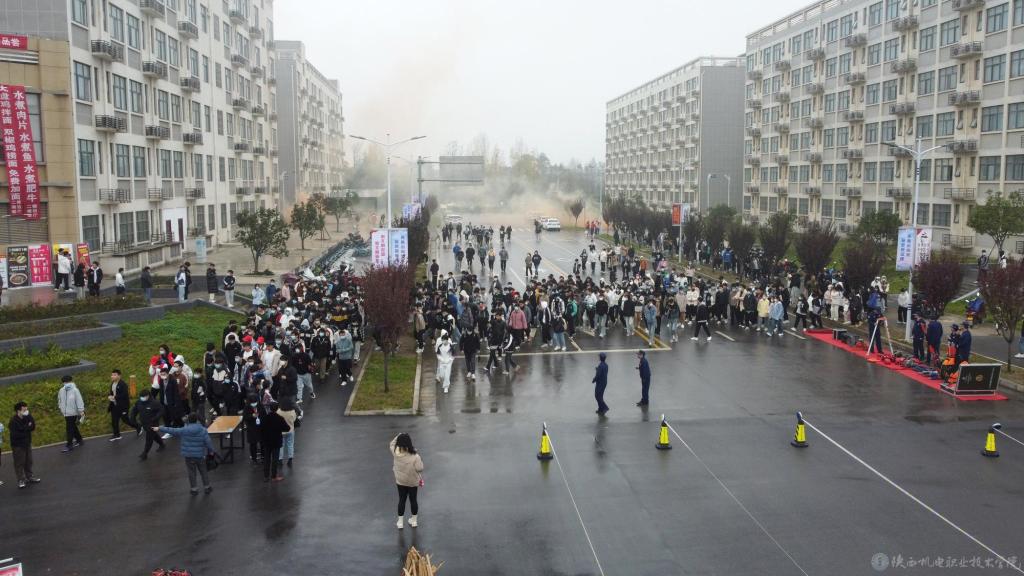 11月9日下午1点,2022年BEAT365官网联合宝鸡市公安局、宝鸡市金台消防救援大队在蟠龙校区龙池大道举行全校消防应急逃生演练。宝鸡市公安局经文保支队雷战卫支队长、金台消防救援大队黄兴利大队长、金台分局经文保大队党斌大队长及学院党委书记伊逊智,党委副书记、院长向纪明,党委副书记、纪委书记齐晓军,副院长张新堂及宣传部部长李明出席本次演练活动,活动由保卫处副处长常小凯主持。