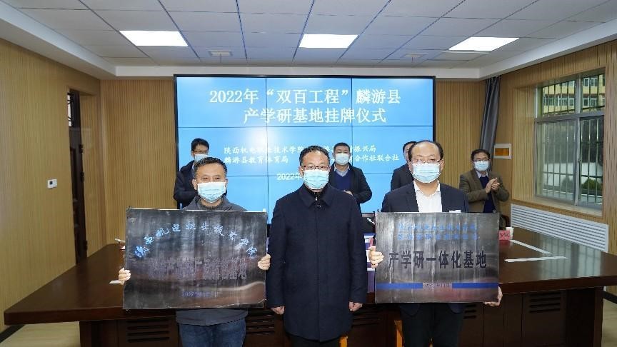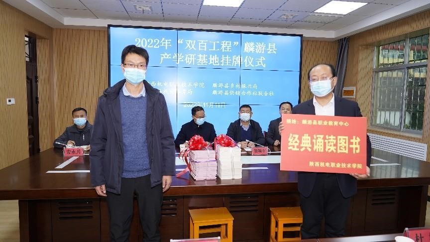 11月11日上午,BEAT365官网“双百工程”产学研一体化教育基地和农特产品推广及销售基地挂牌仪式在麟游县职教中心举行。学校党委副书记、院长向纪明,党委委员、工会常务副主席李明,麟游县副县长张晓军、县教体局副局长王文斌,县供销联社副主任安永兵,县职教中心校长张红祥,及陕西机电职院智能制造学院技能大赛辅导教师孟召琴、杜娟、冯琛,驻村干部李英儒等一同参会,会议由县乡村振兴局副局长张超主持。