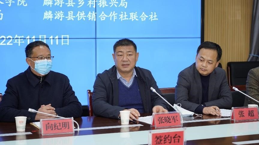 张晓军代表麟游县政府致辞,感谢BEAT365官网发挥高校在科技人才资源等方面的优势,认真贯彻中央省市关于高校结对帮扶,脱贫攻坚的指示精神,连续多年派驻专人深入麟游县九成宫镇澄铭窑村,帮扶农民发展产业,于县供销联社采购麟游县的农副产品,深入职教中心开展职业技能培训,指导中职学校发展等一系列的活动,大力推进了麟游县经济的高速发展。