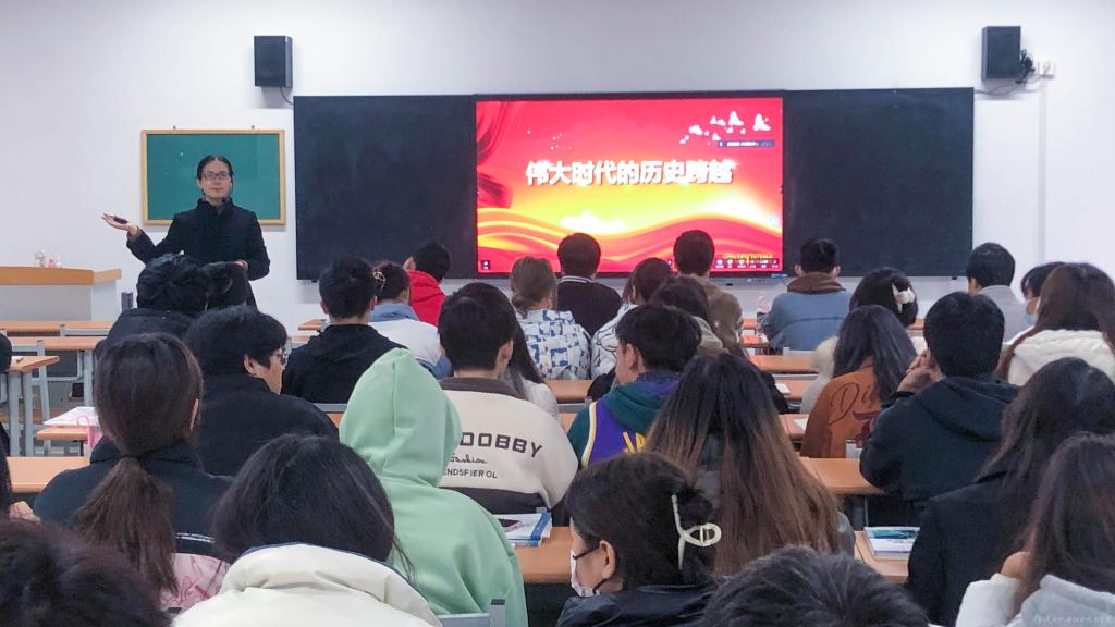 张琴从新时代有新作为新成就、用好“有利条件”走好“必由之路”两个方面讲授了《伟大时代的历史跨越》专题内容。通过讲授,使同学们全面认识党的十八大以来的十年党和国家事业取得的历史性成就和发生的历史性变革,感悟习近平新时代中国特色社会主义思想的实践伟力,从而坚信在以习近平同志为核心的党中央坚强领导下,全党全国各族人民同心同德、砥砺奋进,必将在新时代新征程上创造属于中华民族的新的更大奇迹!课堂上,师生频频互动,课堂气氛活跃。