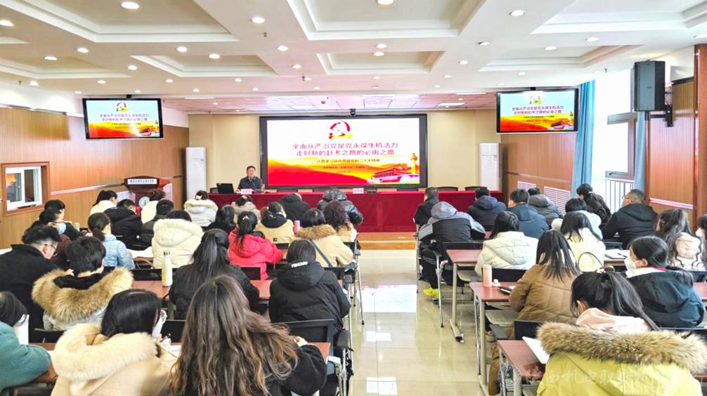 2023年2月2日下午,学校党委副书记、纪委书记齐晓军在宝福路校区汽车机电大楼四楼视频会议室讲授《全面从严治党是党永葆生机活力、走好新的赶考之路的必由之路》专题党课,基础部党支部、经管与艺术学院党支部所辖部门全体教职工、纪委委员、纪检委员等60多人参加,纪委副书记、纪律检查室主任王芙蓉主持会议。