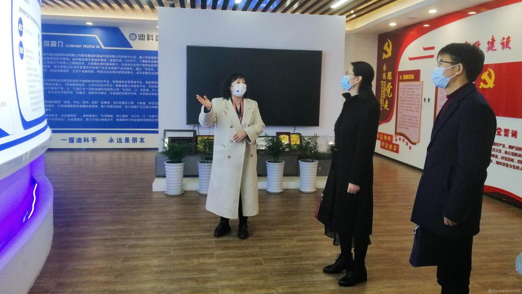 3月23日上午,在西咸新区沣西新城西部云谷创业园区西安迪科数金智能科技有限公司参观调研时,该公司人事经理潘冰华首先介绍了公司概况,并带领党委副书记张琴一行参观了西部云谷创业园、公司文化展厅、业务大厅、工作室、员工宿舍和餐厅等。在随后的座谈会上,该公司总经理田志卿对公司的用人需求、工作模式、薪资待遇、升职空间等进行了介绍,并表示积极参加我校毕业生招聘会,为其公司招聘人才;党委副书记张琴介绍了我校的基本办学、专业设置、人才培养等情况,希望公司能为我校大数据与会计、计算机等专业毕业生提供良好就业岗位,并表示愿为公司提供场地并与公司开展校企联合办学等深层次长期性合作。
