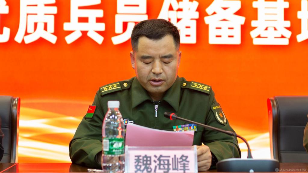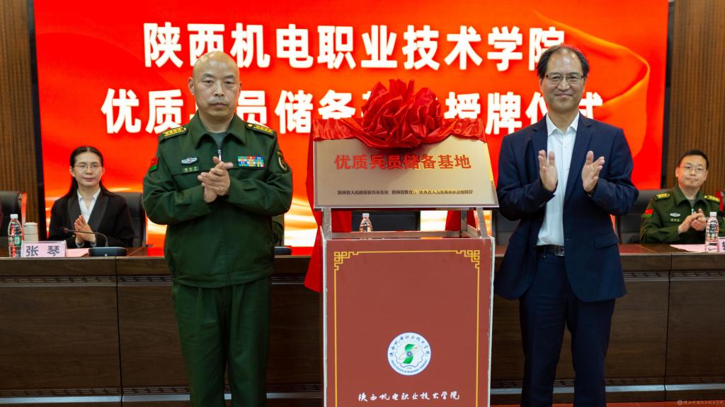 仪式上,张琴代表学校致欢迎辞,并介绍了我校近年来征兵工作开展情况和“优质兵员储备基地”后期建设工作设想;魏海峰宣读了省征兵办、省教育厅、省人社厅关于批准设立“优质兵员储备基地”的批复;杨红升与伊逊智为学校“优质兵员储备基地”揭牌;四所院校领取了2022年高校征兵工作补助经费。