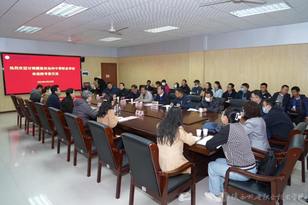 4月23日上午,甘南藏族自治州中等职业学校副校长才虎杰等一行26人来校考察交流。我校党委副书记张琴、教务处处长白娟娟、学生处处长王建斌、招生就业处处长朱云洁、党政办主任康健、后勤保障处处长李峰在蟠龙校区图书馆二楼会议室参加座谈会。