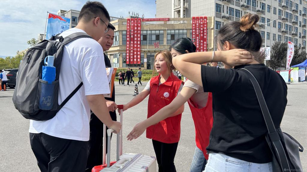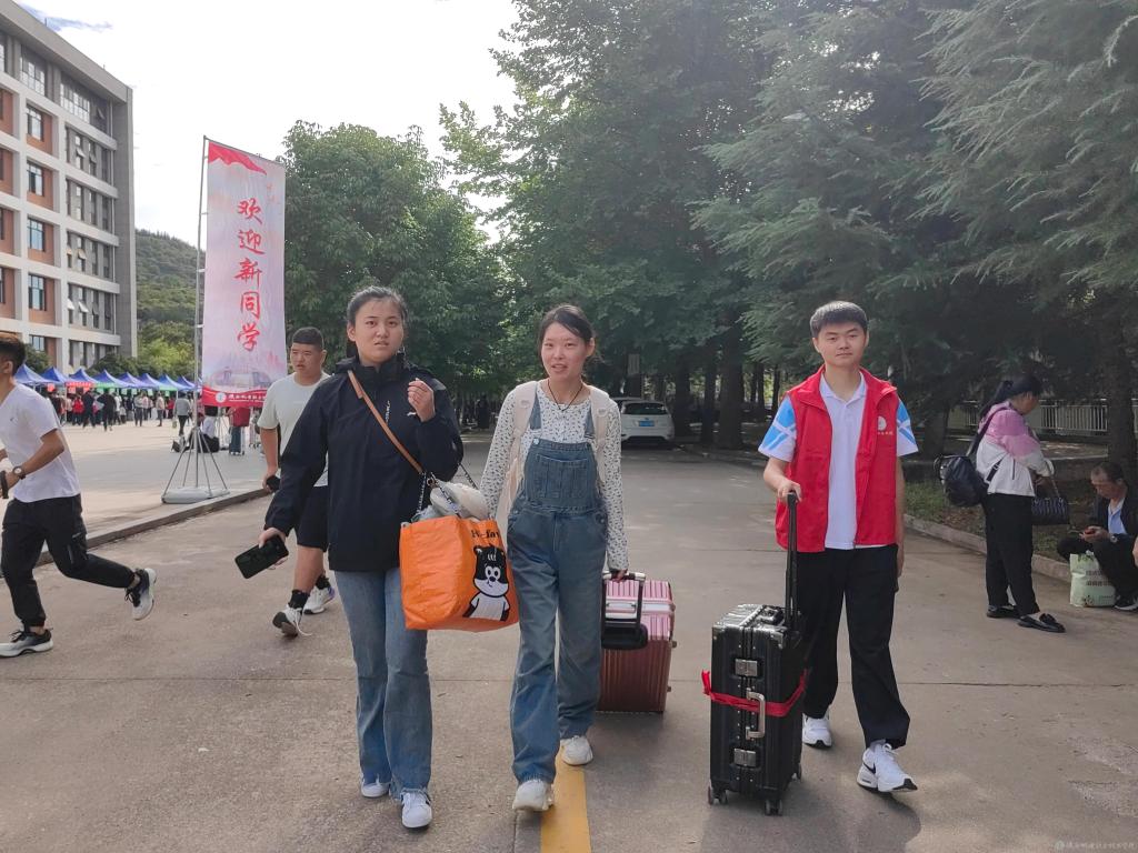 学校分别在宝鸡火车站、高铁南站、汽车高速客运中心等站点安排爱心接送直达车,有序引导,确保新生平安到校。各报到点,志愿者们热情地帮助新生搬运行李,引导完成报到手续、物资领取、寝室入住等全部流程。设立“绿色通道”,确保家庭经济困难学生顺利入学。迎新现场洋溢着青春的气息,各学院及服务点的迎新帐篷在阳光下显得格外耀眼,趣味打卡点吸引新生们打卡合影、记录入学首日的美好瞬间,校园内充满了生机与活力。