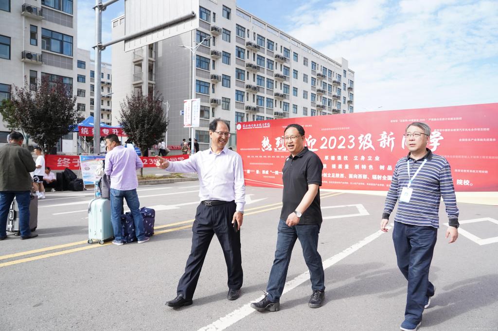 校党委书记伊逊智,党委副书记、院长向纪明,党委副书记张琴,校领导以及各二级学院负责人赴现场指导迎新工作,详细了解报到工作的布置与落实情况,深入新生寝室看望慰问新生,与2023级新生及家长亲切交流,了解他们的报到感受和需求,并勉励同学们要尽快适应新环境,变换新角色,争做新时代的奋进者、开拓者和奉献者。校领导问候关怀坚守一线的工作人员和学生志愿者,要求各迎新单位通力协作,为2023级新生提供周到细致的服务,营造温馨、和谐的迎新环境,确保迎新工作顺利完成。