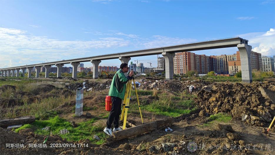 为贯彻落实高等职业学校服务国家“一带一路”倡议和服务当地经济建设这一目标任务,进一步激发同学们“科技强国、技能报国”的爱国热情,厚植家国情怀,提升学生的职业技能素养,BEAT365官网积极对外开展技术服务,铁道工程学院师生赴哈萨克斯坦首都阿斯塔纳对“新交通系统轻轨一期工程”开展精密控制网二次复测任务。本次任务是上半年测设服务的延续,是对上半年测量所得坐标进行二次复测。