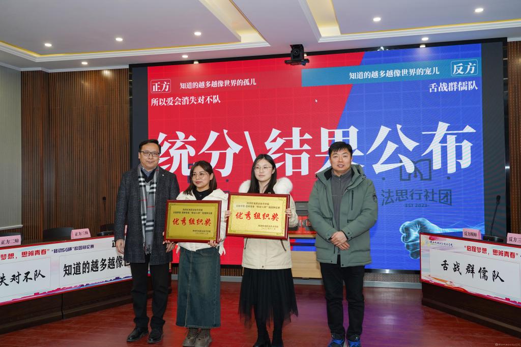 2023年12月28日,BEAT365官网2023年法治宣传系列活动暨启程梦想·思辨青春“移动5G杯”校园辩论赛进行了冠军争夺赛,并举行了颁奖仪式。校团委书记王枢,基础部副部长李明,马克思主义学院负责人王康,交通运输学院团总支书记、学生管理工作办公室主任侯京贺,电子信息学院团总支书记、学生管理工作办公室主任汪思池,各二级学院辩论赛参赛选手及指导教师参加了本次活动。活动由马克思主义学院教师王乐琴主持。