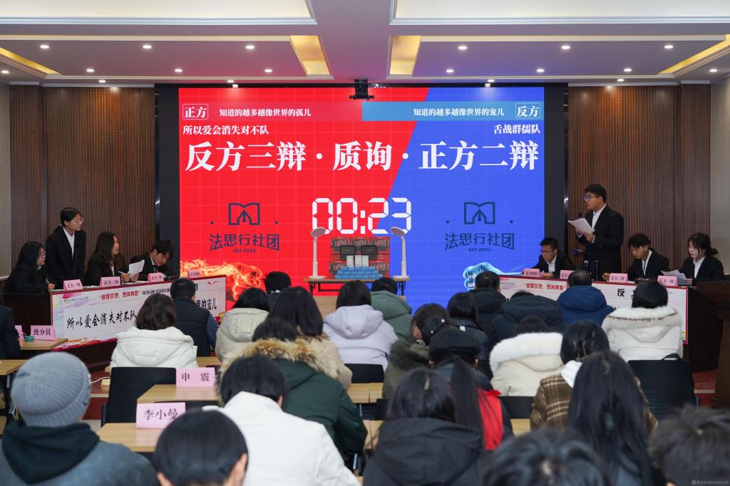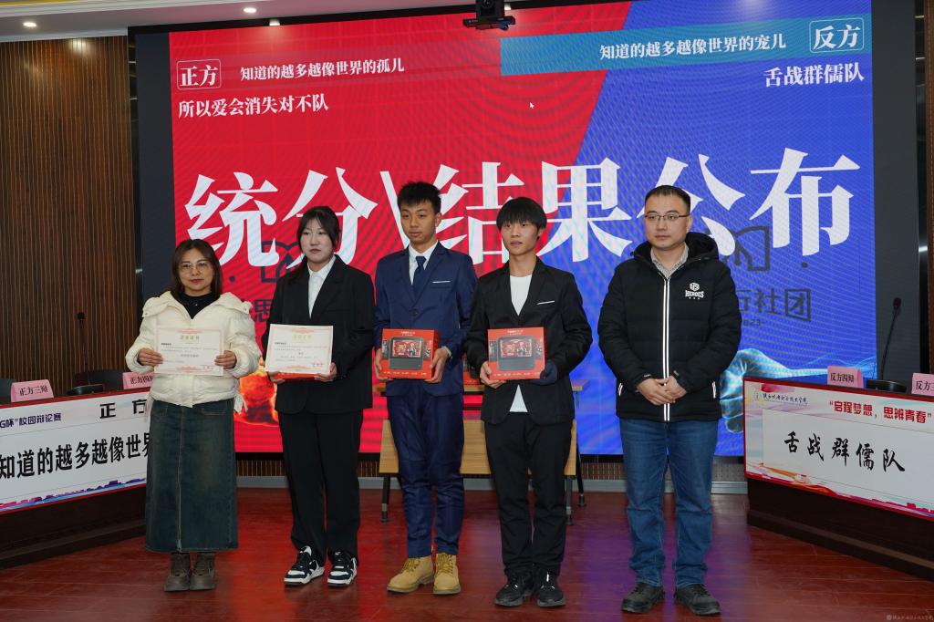 本届校园辩论赛中,辩手们在赛场上才思敏捷、字字珠玑、平分秋色,为我们呈现了一场场精彩纷呈的对战,展现了青年大学生勤学善思、明辨笃行的青春风采。让我们期待着下一届更加精彩的辩论赛。