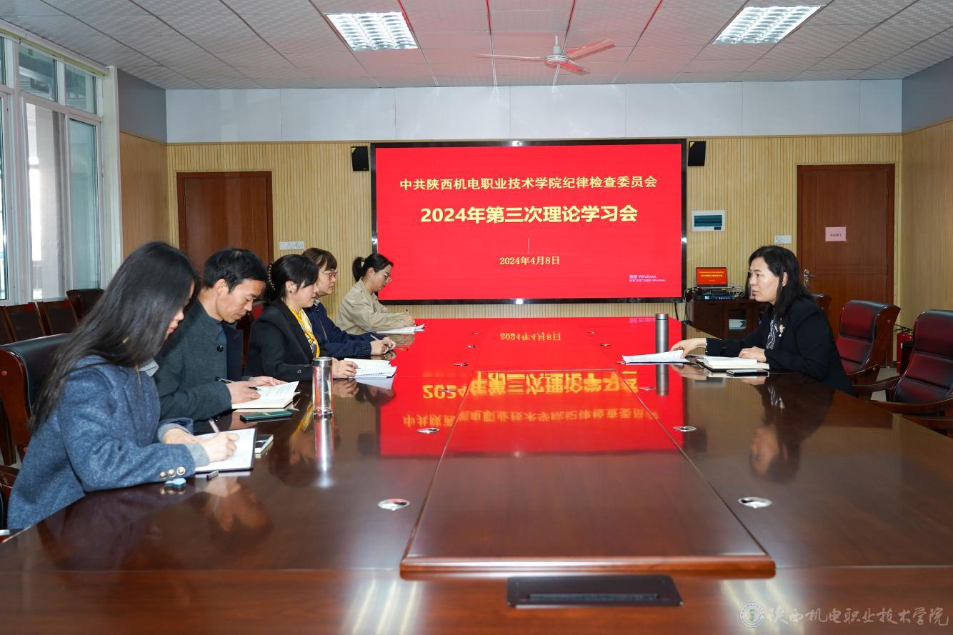 4月9日,学校纪委在蟠龙校区图书楼二楼会议室召开2024年度第三次理论学习会。纪委委员、纪律检查室工作人员参加,党委副书记、纪委书记陈红梅主持会议并讲话。