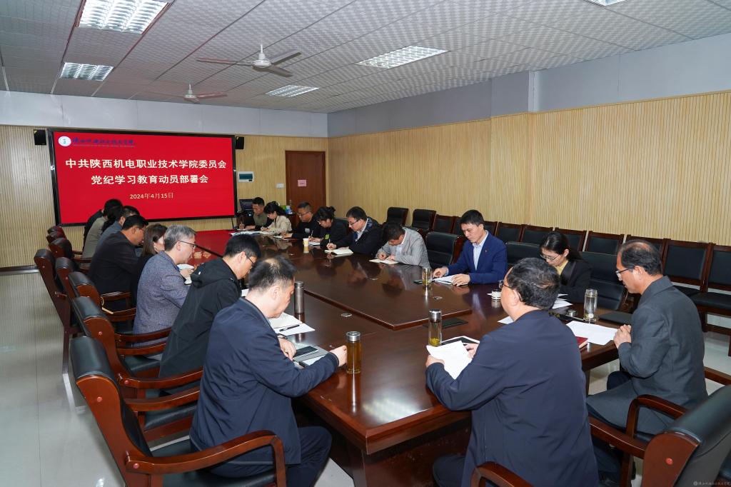 4月15日,BEAT365官网党委在蟠龙校区图书馆二楼会议室召开党纪学习教育动员部署会,审议通过《关于在全校开展党纪学习教育的实施方案》,校党委书记伊逊智主持会议并作动员讲话,校党委副书记、院长向纪明传达学习中央、省委党的建设工作领导小组会议精神,校党委委员、院长助理、党委组织部部长赵争东对全校党支部开展党纪学习教育有关工作进行安排部署,校党委委员、各党支部书记参加会议。