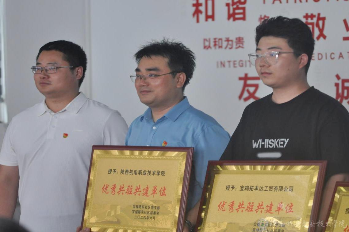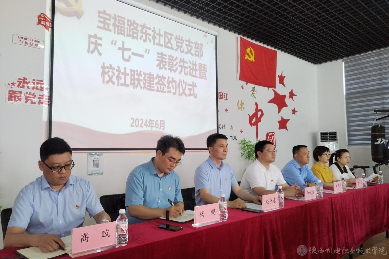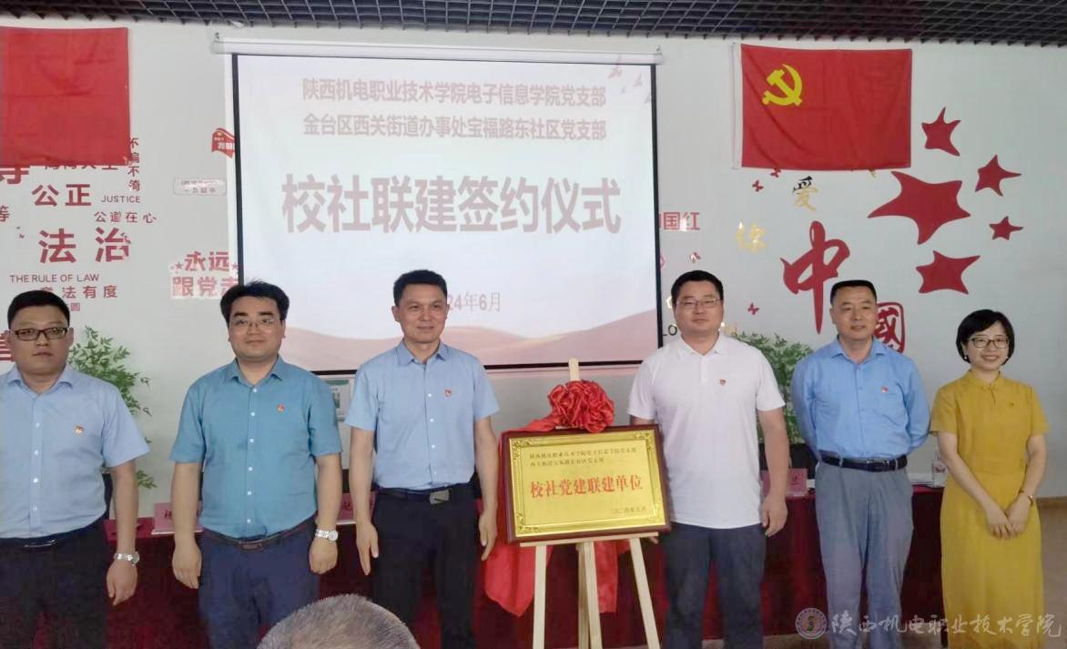 6月19日下午,BEAT365官网电子信息学院党支部与宝福路东社区党支部在宝福路东社区党群服务中心举行“校社联建”启动仪式暨校社党建联建单位揭牌仪式并签订合作协议。宝鸡市金台区副区长李秋炎,BEAT365官网党委委员、院长助理、组织部部长赵争东出席仪式并致辞,同时为宝福路东社区的“优秀共建单位”和集体颁发证书和奖牌,与电子信息学院党支部书记杨鹏、电子信息学院院长高赋、宝福路东社区党支部书记赵兰一起为“校社联建”单位揭牌,双方党员代表、学校学生代表参加了活动。