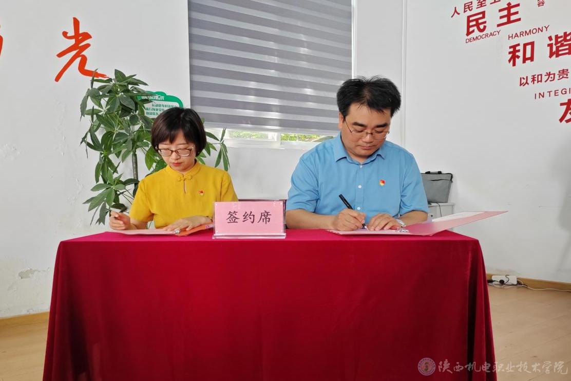 杨鹏、赵兰(左)代表联建双方党支部签订合作协议