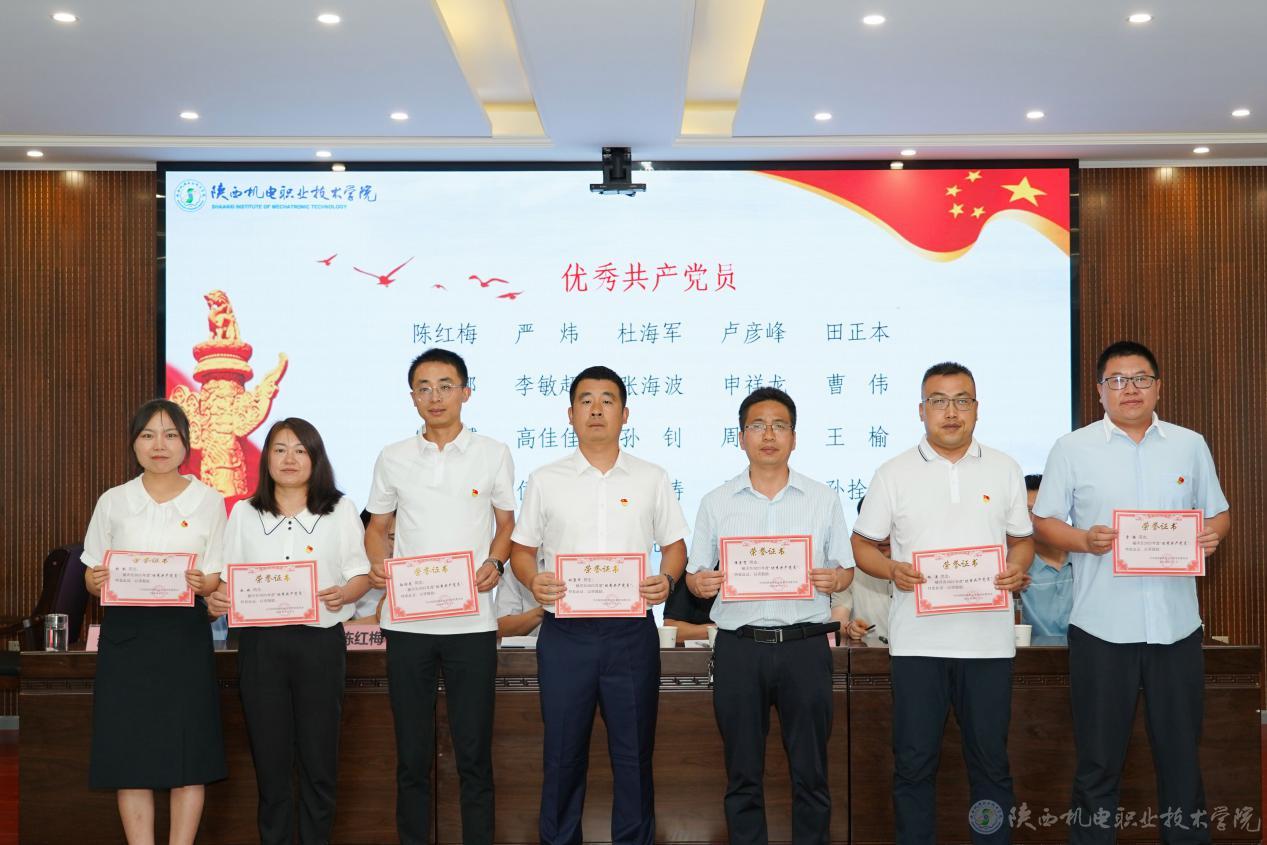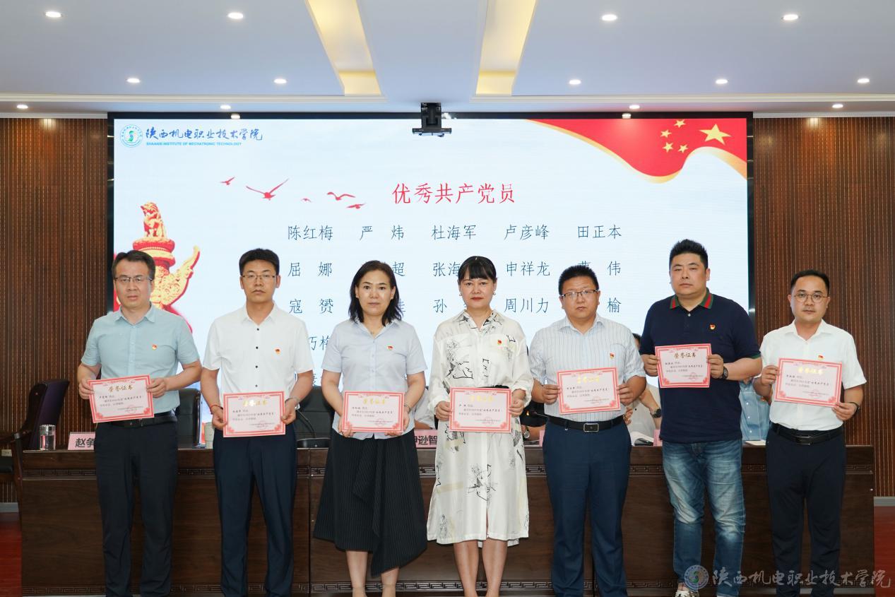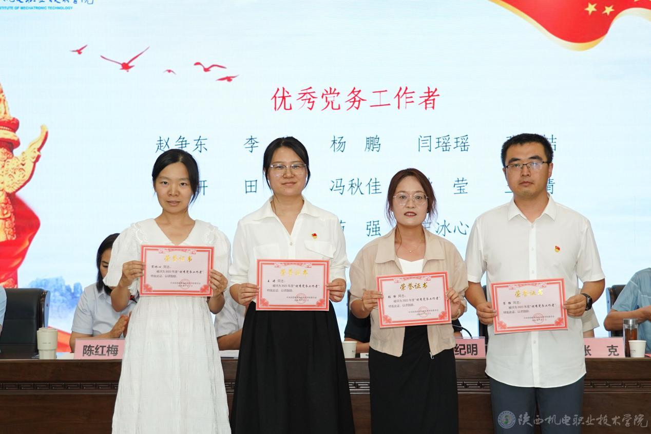 会上,党委副书记、纪委书记陈红梅宣读了《关于庆祝建党103周年暨表彰“先进党支部”“优秀共产党员”“优秀党务工作者”的决定》,党委委员、副院长张克宣读了《关于表彰2023年度宣传思想工作先进集体、先进个人的决定》,校领导为获奖集体和优秀个人颁发荣誉证书。电子信息学院史磊老师代表党员发言,表示要在三个方面继续努力:一是始终牢记为党育人、为国育才的初心与使命,潜心教学;二是加强学习,培养过硬的工作本领;三是勇于创新,始终保持党员先进性。