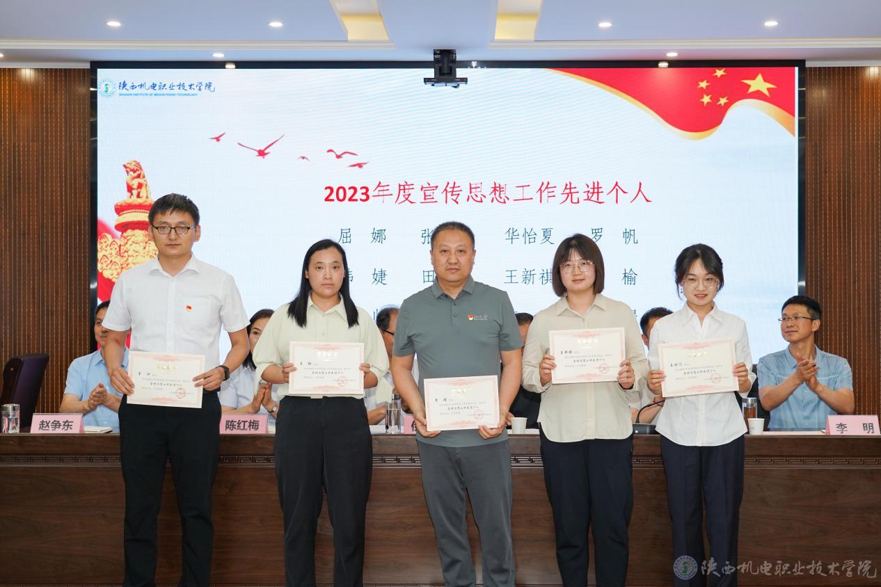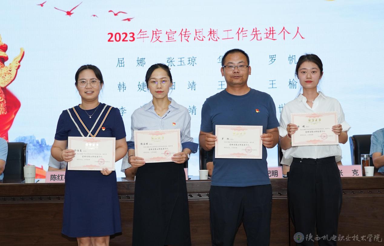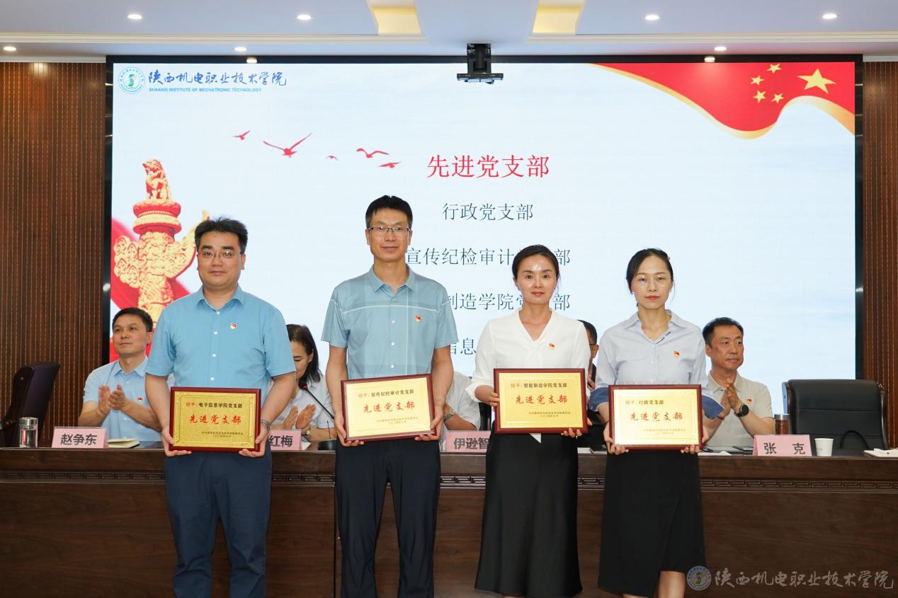 会上,党委副书记、纪委书记陈红梅宣读了《关于庆祝建党103周年暨表彰“先进党支部”“优秀共产党员”“优秀党务工作者”的决定》,党委委员、副院长张克宣读了《关于表彰2023年度宣传思想工作先进集体、先进个人的决定》,校领导为获奖集体和优秀个人颁发荣誉证书。电子信息学院史磊老师代表党员发言,表示要在三个方面继续努力:一是始终牢记为党育人、为国育才的初心与使命,潜心教学;二是加强学习,培养过硬的工作本领;三是勇于创新,始终保持党员先进性。