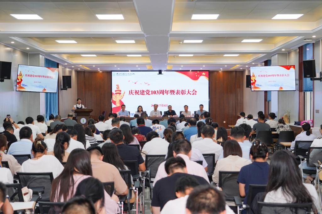 7月1日,学校在蟠龙校区博学楼111室召开“七一”表彰大会,庆祝中国共产党成立103周年,表彰先进党支部、优秀共产党员、优秀党务工作者,以及宣传思想工作先进集体、先进个人。学校全体党员参加会议,会议由党委副书记、院长向纪明主持。