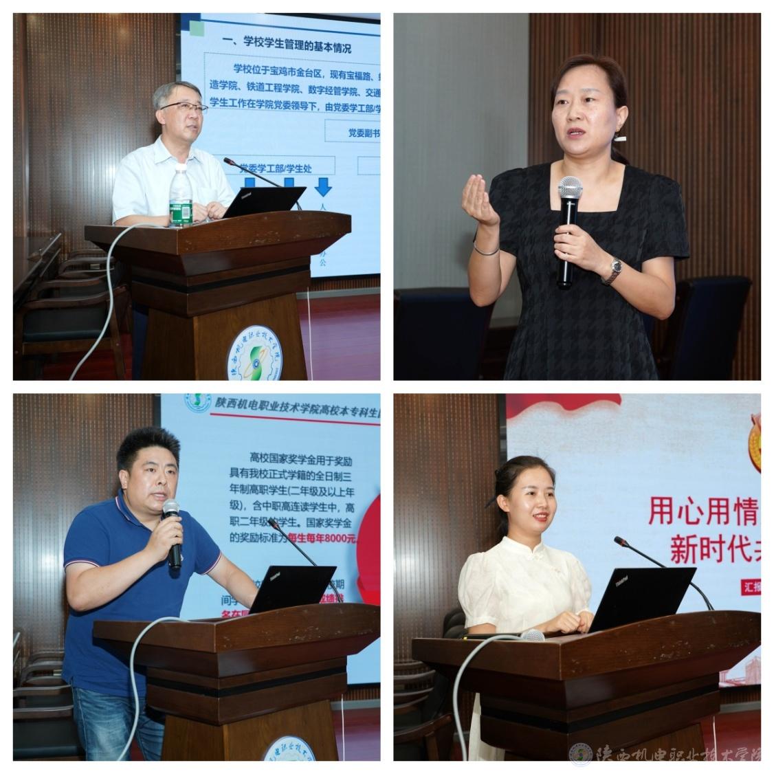 训练营期间学生处处长王建斌,心理健康教育中心主任张国华、学生资助管理中心主任张海波、校团委副书记董妍分别围绕学生日常规范管理、心理危机干预、高校资助政策、新时代共青团工作等方面进行了工作交流。