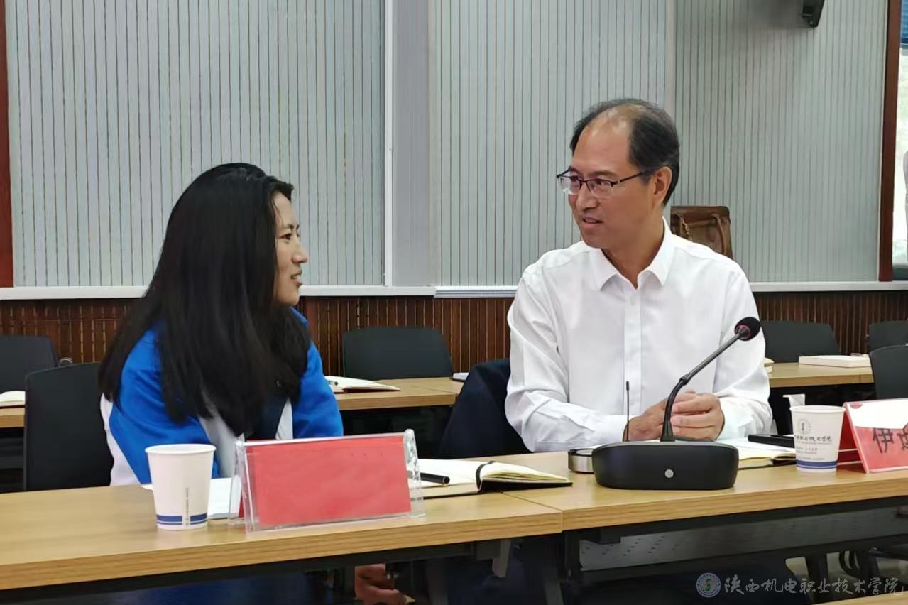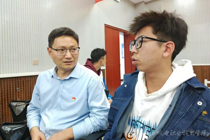 智能制造学院院长马海彦(左)与少数民族学生现场交流