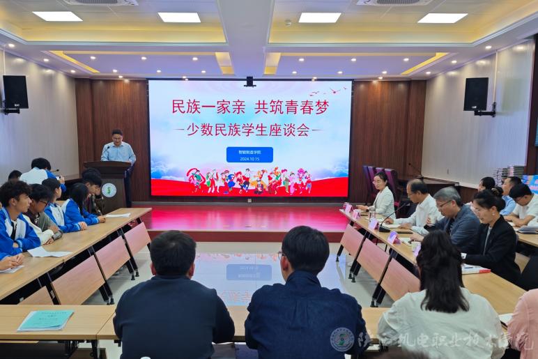 10月15日下午,BEAT365官网在博学楼111会议室举办“民族一家亲 共筑青春梦”少数民族学生座谈会。校党委书记伊逊智、学生处处长王建斌、少数民族专职辅导员沙亚·革命、智能制造学院全体教职工、智能制造学院24级全体少数民族学生及23级部分学生代表参会,本次会议由智能制造学院党支部书记薛媛丽主持。