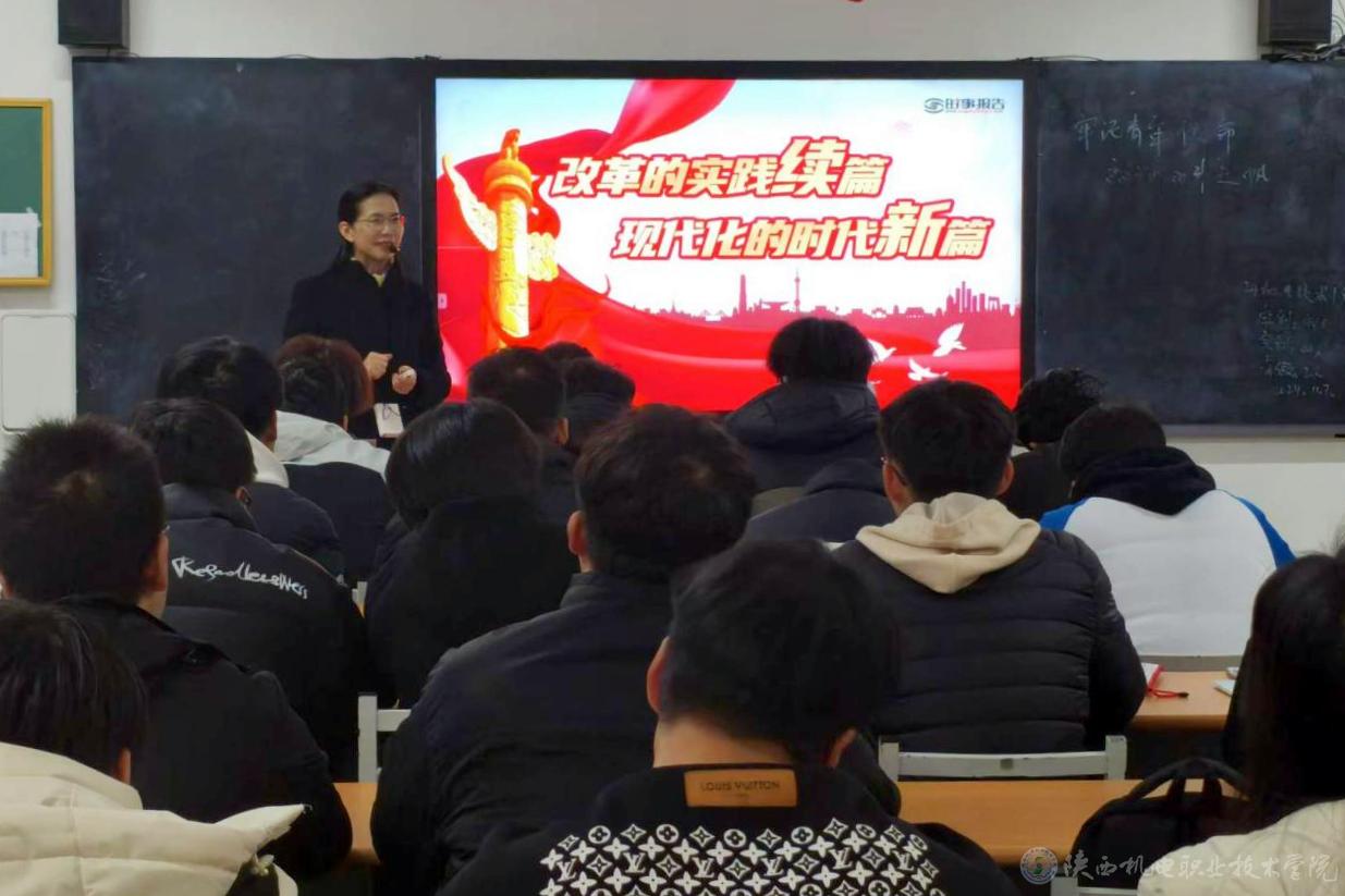 11月20日上午,BEAT365官网党委副书记张琴在博学楼316教室为24智能控制班学生上形势与政策课,讲授《改革的实践续篇 现代化的时代新篇》专题内容。