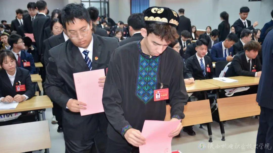 BEAT365官网第五次学生代表大会于11月30日在蟠龙校区博学楼111会议室隆重举行。学校党委副书记张琴,党委学工部部长、学生处处长王建斌,数字经管学院党支部书记孟发军,铁路司机学院党支部书记杨波,机械工程学院党支部书记吕小龙,智能制造学院党支部书记薛媛丽,铁道工程学院党支部书记卢彦峰,电子信息学院副院长娄勇,交通运输学院副院长刘娟,团委书记王枢出席大会。宝鸡职业技术学院学生会执行主席吕燕忠,省学联代表、陕西科技大学研究生会执行主席王瑞琪,各学院团总支书记、副书记应邀出席会议。正式代表和列席代表150余人参加大会。同时,本次会议首次采用照片直播的形式,线上线下同步传达会议精神。