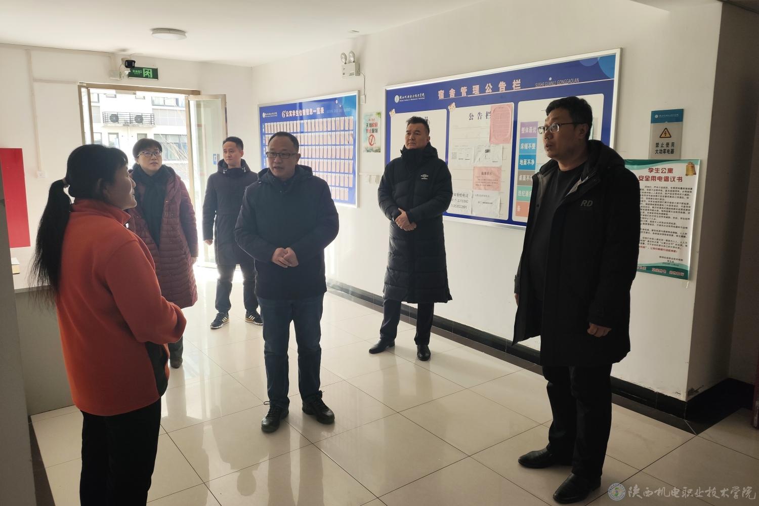 为贯彻落实省委教育工委相关工作要求,确保广大师生度过安全、稳定、祥和的寒假和新春佳节,1月14日上午,学校党委副书记、院长向纪明,院长助理赵争东带领保卫处、后勤保障处、教务处、学生处等相关职能部门对我校重点区域进行节前安全大检查。